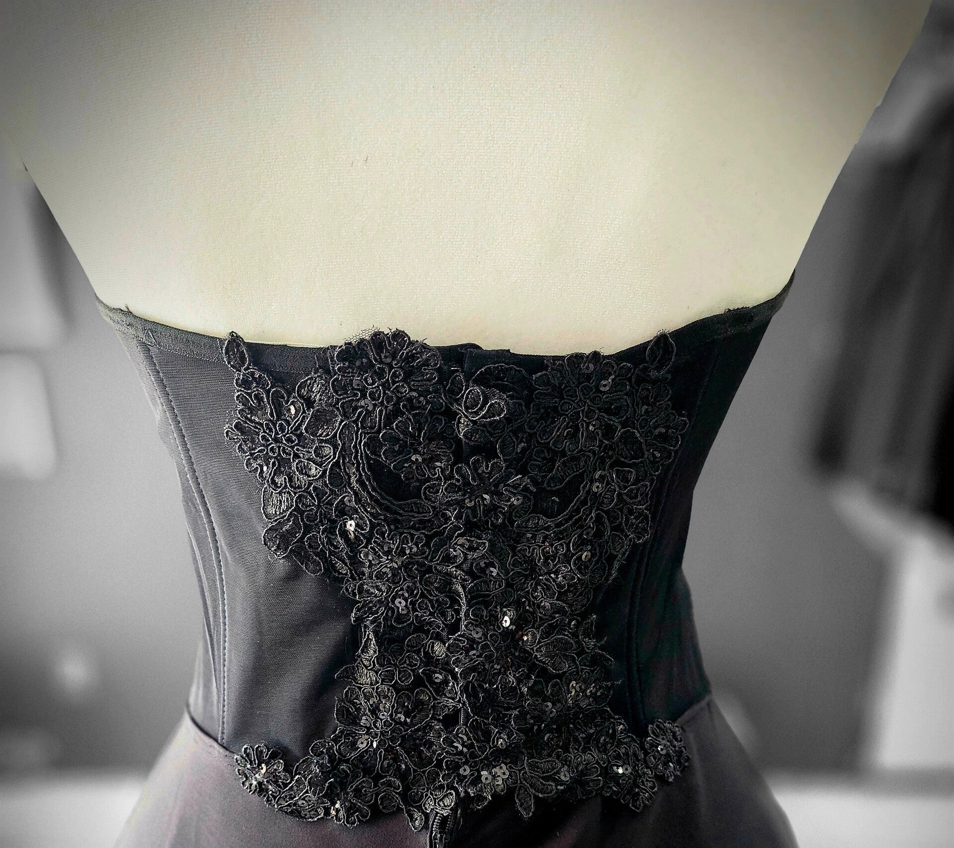 A bold and unforgettable look, our black beaded mermaid gown with a dramatic textured skirt is perfect for proms, galas, or statement brides.